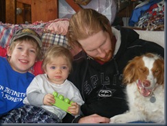 Dave, Barb and Tyler went out to cut and collect wood for their wood stove. Dave Sr. was helping a good friend put in garage doors. Ryan and DJ were taking a break from spearing so i snatched these pictures of the boys.