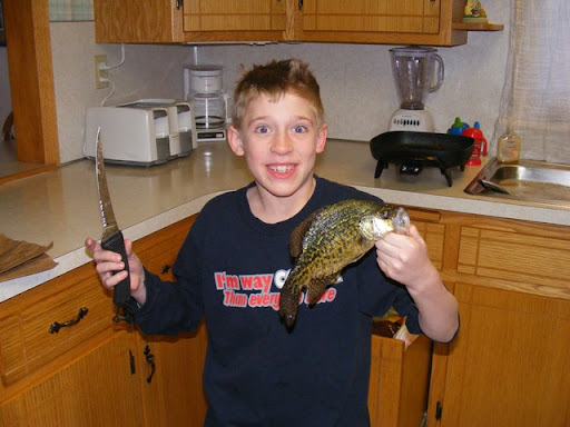 Finally a day off....up early anyway. After some cleaning and laundry Dave and I went over to visit with Barb, Dave and the boys. I think DJ and Tyler have grown a whole foot since I've seen them last! They are all such handsome boys. DJ celebrated cleaning his first 2 Crappies!!