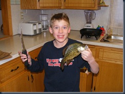 Finally a day off....up early anyway. After some cleaning and laundry Dave and I went over to visit with Barb, Dave and the boys. I think DJ and Tyler have grown a whole foot since I've seen them last! They are all such handsome boys. DJ celebrated cleaning his first 2 Crappies!!